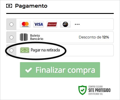 Caso você escolha a opção “Pagar na retirada”, favor colocar o prazo desejado no campo de observação ao finalizar o pedido (Exemplo abaixo);