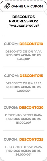 Os descontos estão na aba de CUPOM e aumentam de acordo com o valor do pedido (Imagem abaixo);